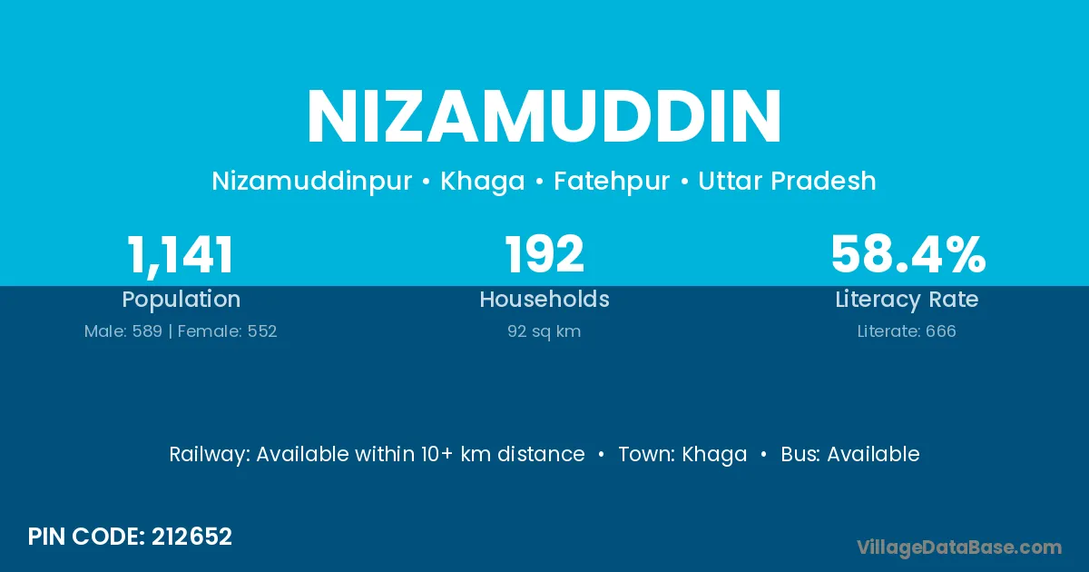 Khaga is the nearest town to Nizamuddin village for major economic activities
