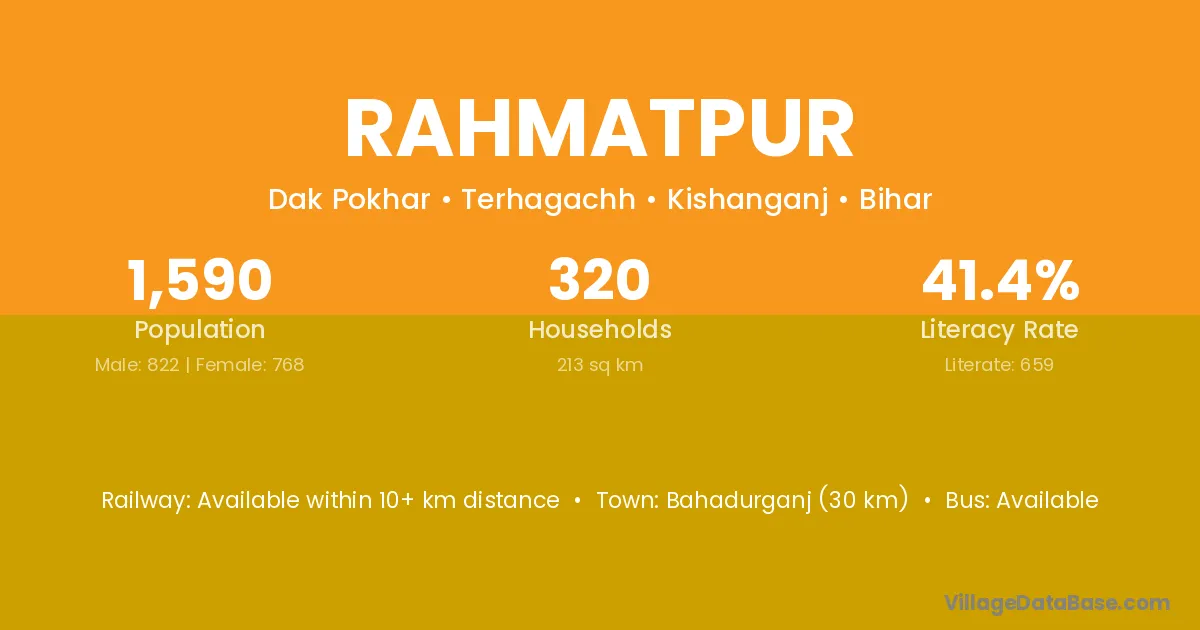 The literacy rate of Rahmatpur village is 54.00%. Male literacy stands at 60.97% and female literacy at 45.88%.