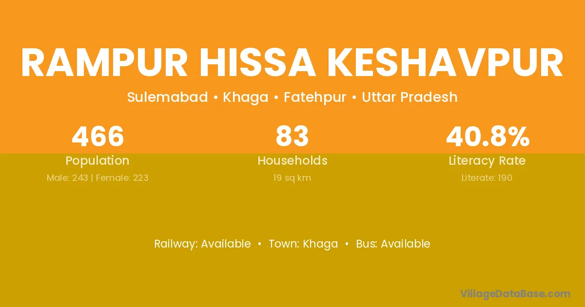 Rampur Hissa Keshavpur village has a total population of 466 people, of which 243 are males and 223 are females.