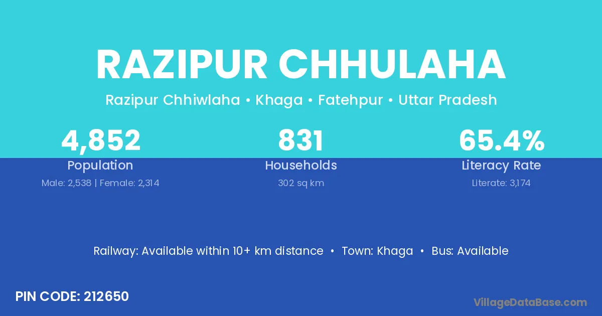 According to Census 2011 information, the village code of Razipur Chhulaha village is 212650.