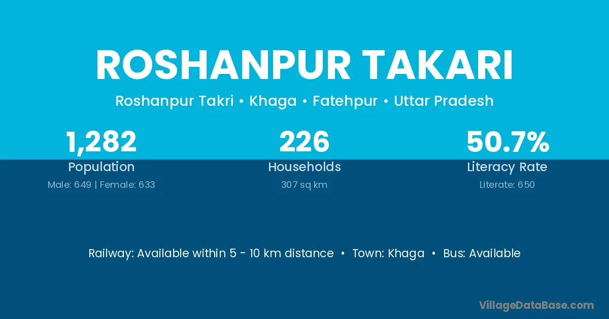 Khaga is the nearest town to Roshanpur Takari village for major economic activities