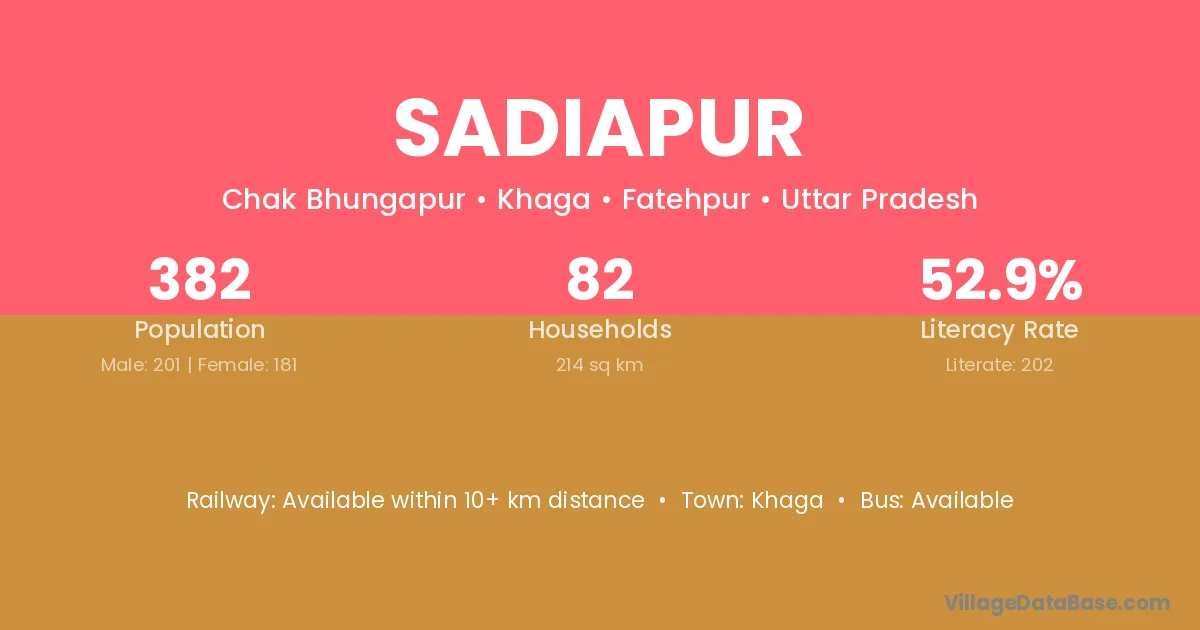 Sadiapur village has a total population of 382 people, of which 201 are males and 181 are females.