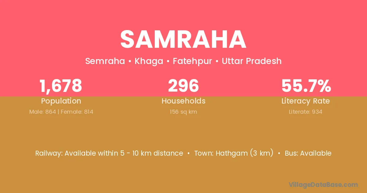 Hathgam (3 km) is the nearest town to Samraha village for major economic activities and is located approximately 3 km away.