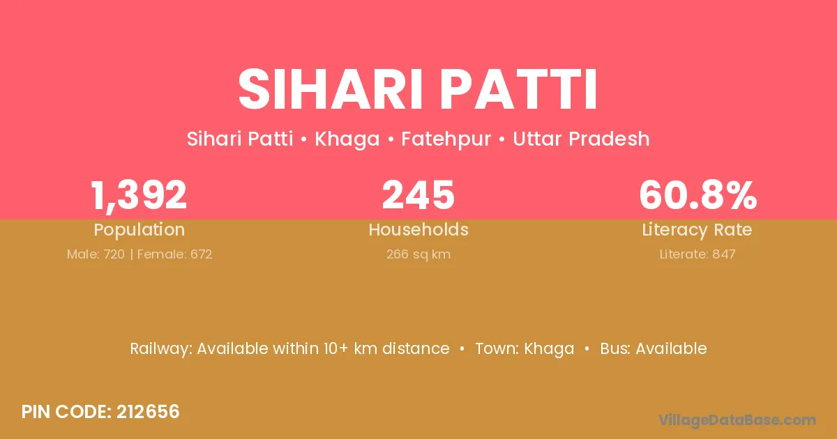 Khaga is the nearest town to Sihari Patti village for major economic activities