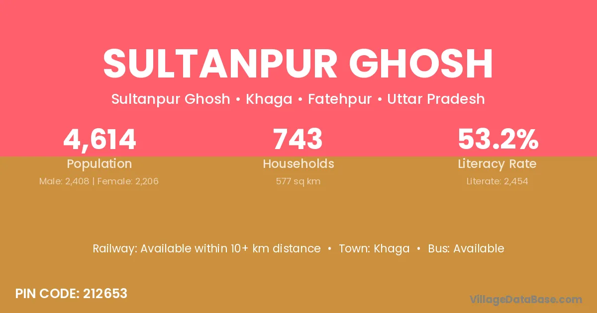 Khaga is the nearest town to Sultanpur Ghosh village for major economic activities