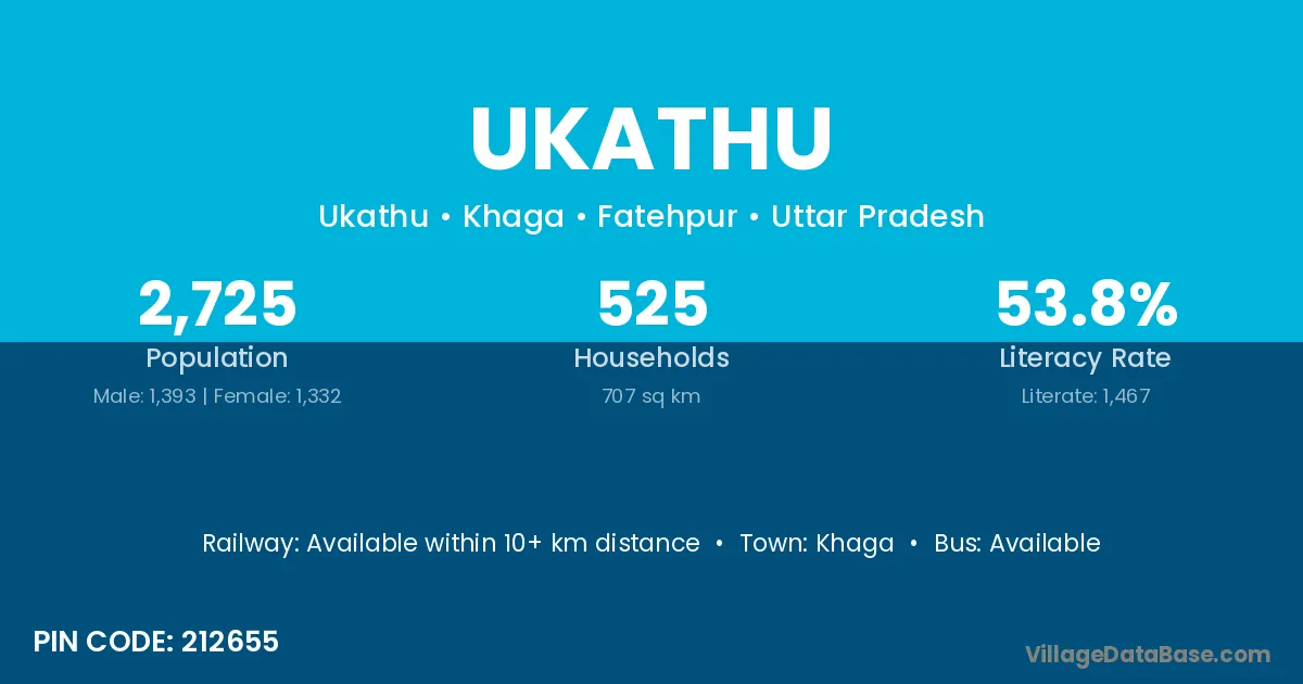 According to Census 2011 information, the village code of Ukathu village is 212655.