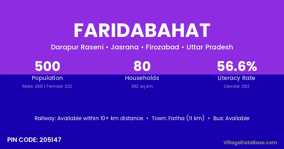Faridabahat village has a total population of 500 people, of which 268 are males and 232 are females.