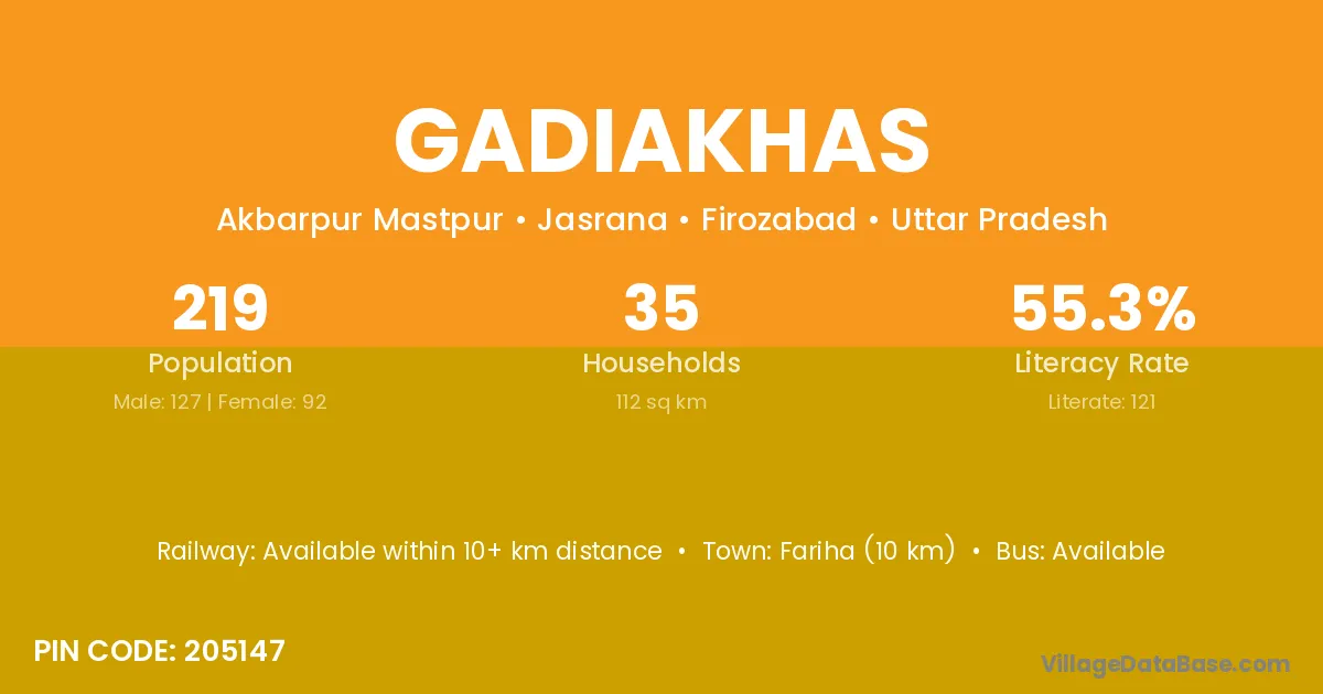 Gadiakhas village is located in the Jasrana Tehsil of the Firozabad district in Uttar Pradesh .