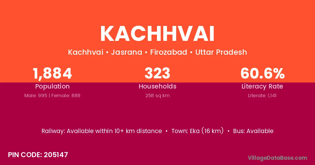 Kachhvai village has a total population of 1,884 people, of which 995 are males and 889 are females.