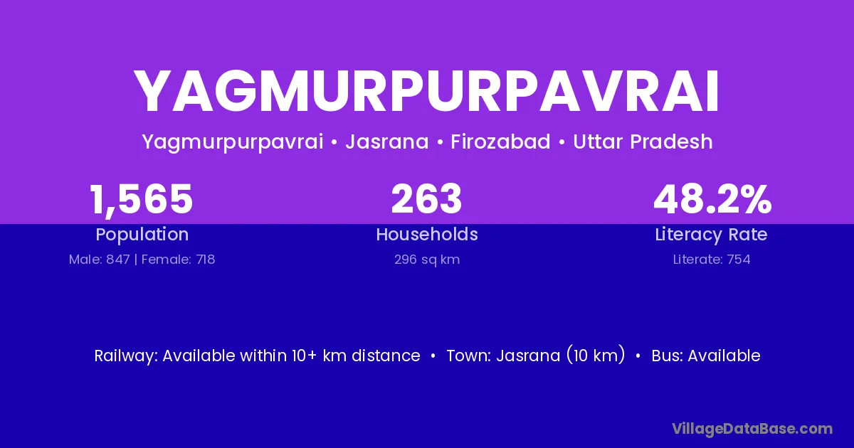 Yagmurpurpavrai village is located in the Jasrana Tehsil of the Firozabad district in Uttar Pradesh .