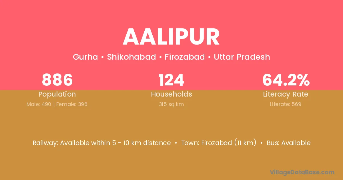 Firozabad (11 km) is the nearest town to Aalipur village for major economic activities and is located approximately 11 km away.