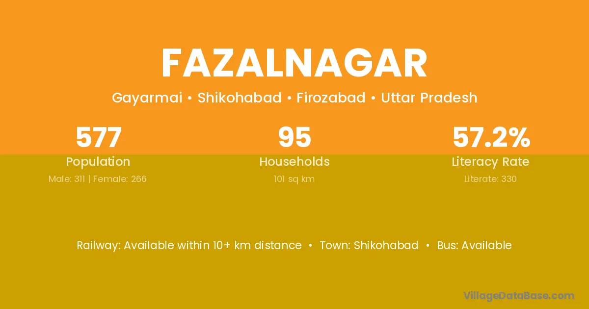 Fazalnagar village has a total population of 577 people, of which 311 are males and 266 are females.
