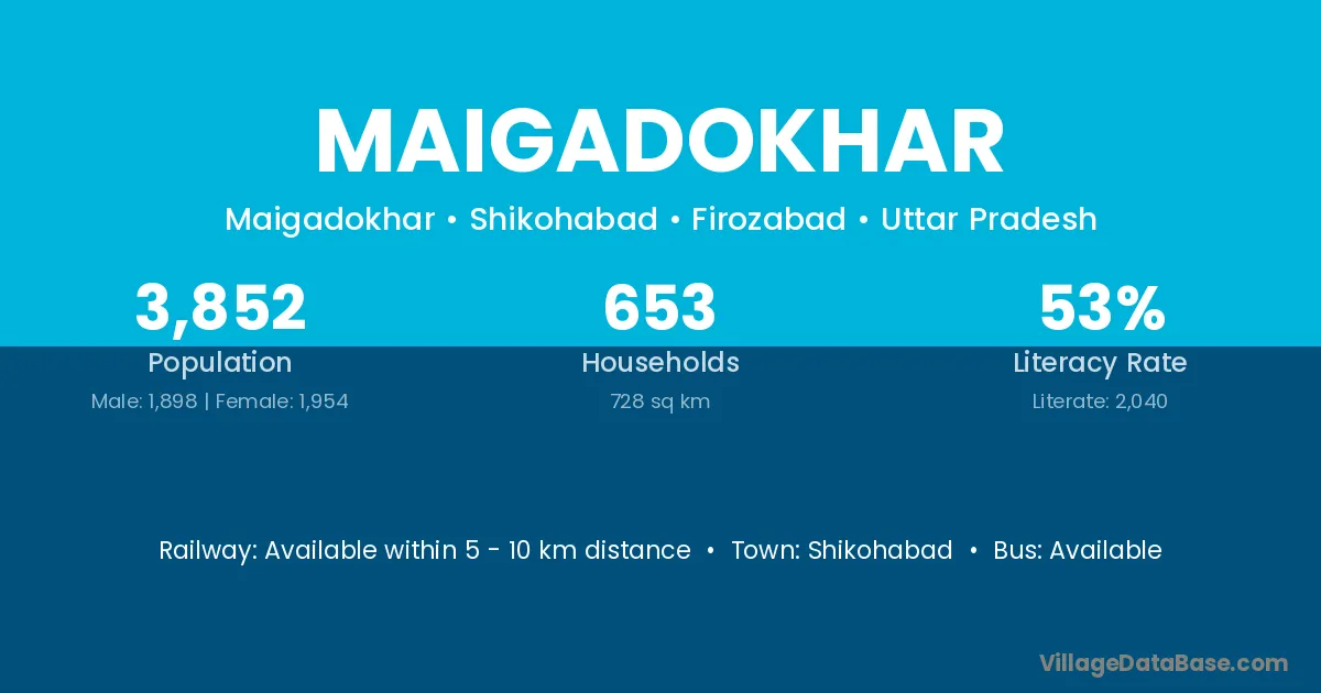Shikohabad is the nearest town to Maigadokhar village for major economic activities