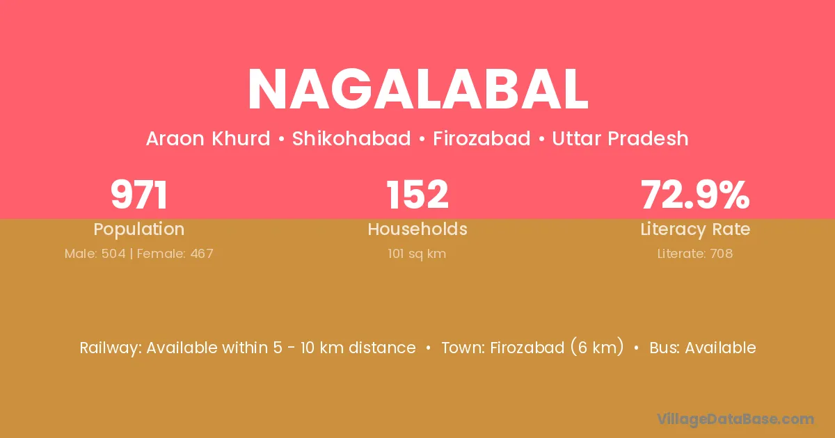 Firozabad (6 km) is the nearest town to Nagalabal village for major economic activities and is located approximately 6 km away.