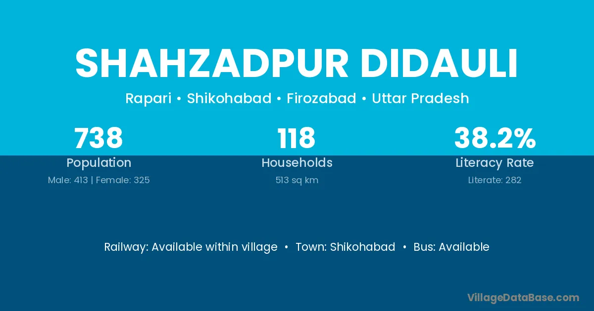 Shahzadpur Didauli village has a total population of 738 people, of which 413 are males and 325 are females.