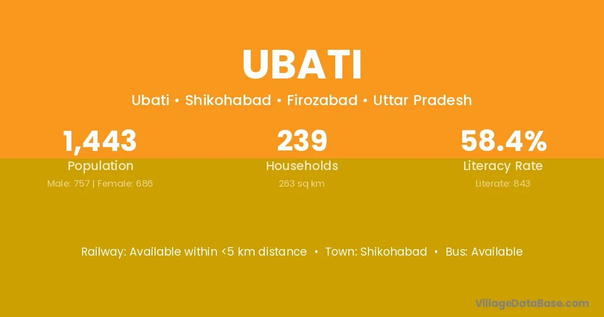 Shikohabad is the nearest town to Ubati village for major economic activities