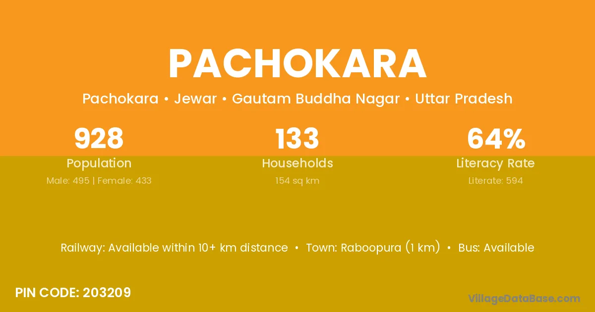 Tundla (7 km) is the nearest town to Pachokara village for major economic activities and is located approximately 7 km away.
