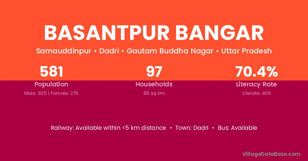 Basantpur Bangar village has a total population of 581 people, of which 305 are males and 276 are females.
