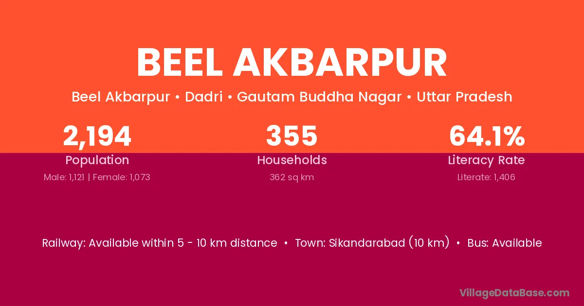 Sikandarabad (10 km) is the nearest town to Beel Akbarpur village for major economic activities and is located approximately 10 km away.