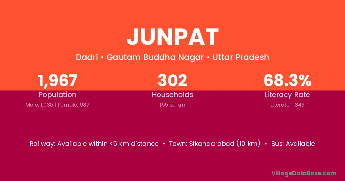 Sikandarabad (10 km) is the nearest town to Junpat village for major economic activities and is located approximately 10 km away.