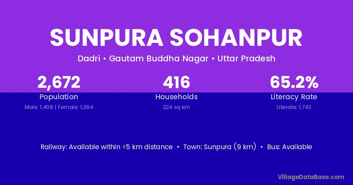 Sunpura (9 km) is the nearest town to Sunpura Sohanpur village for major economic activities and is located approximately 9 km away.
