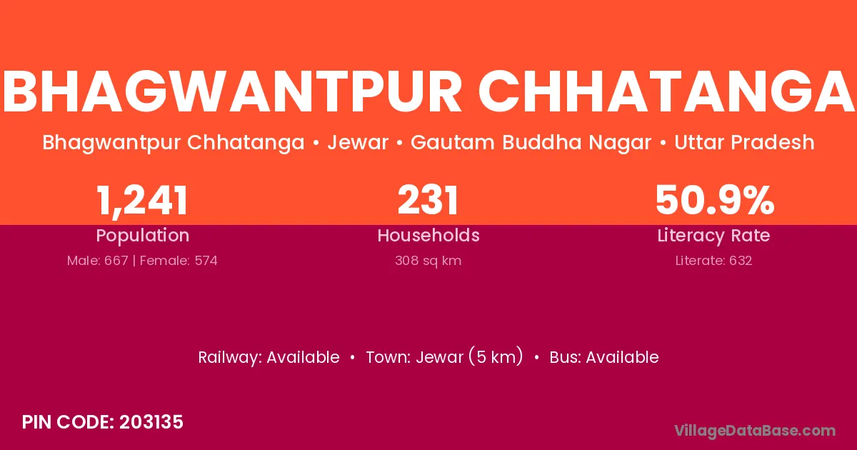 Jewar (5 km) is the nearest town to Bhagwantpur Chhatanga village for major economic activities and is located approximately 5 km away.