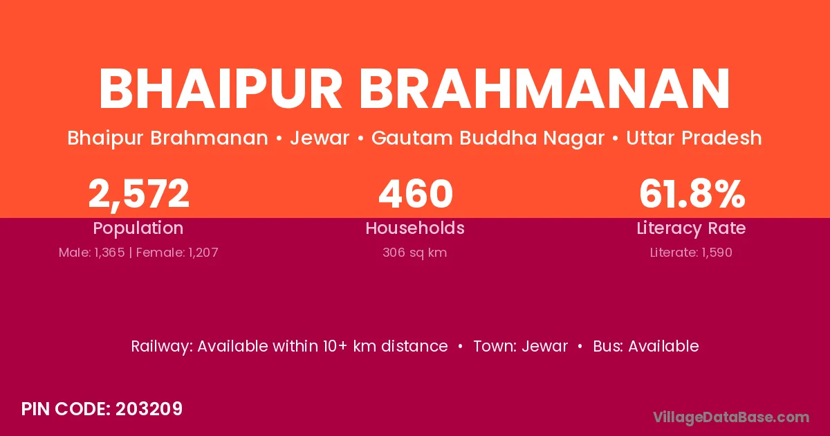 Jewar is the nearest town to Bhaipur Brahmanan village for major economic activities