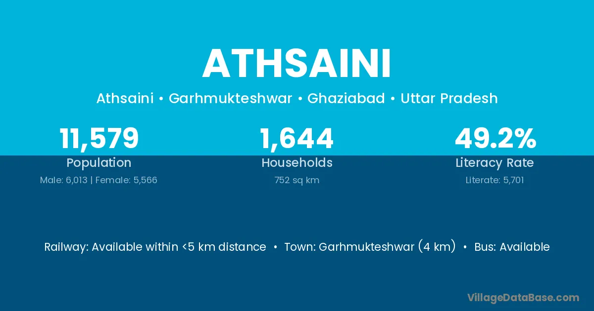 Garhmukteshwar (4 km) is the nearest town to Athsaini village for major economic activities and is located approximately 4 km away.