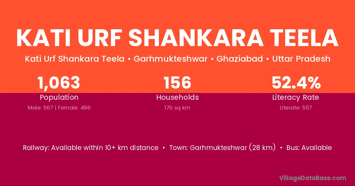 Kati Urf Shankara Teela village has a total population of 1,063 people, of which 567 are males and 496 are females.
