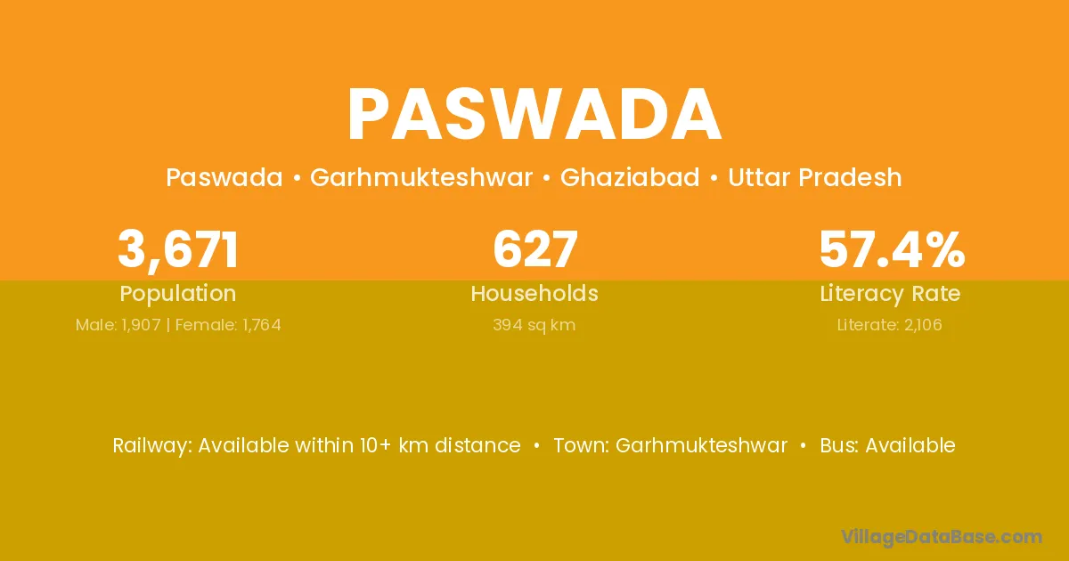 Paswada village is located in the Garhmukteshwar Tehsil of the Ghaziabad district in Uttar Pradesh .
