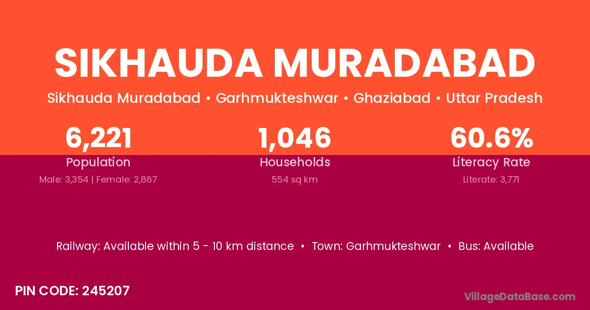 Sikhauda Muradabad village has a total population of 6,221 people, of which 3,354 are males and 2,867 are females.
