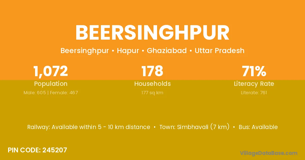Simbhavali (7 km) is the nearest town to Beersinghpur village for major economic activities and is located approximately 7 km away.