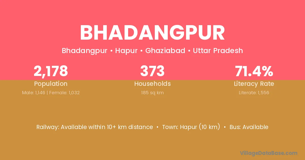 Hapur (10 km) is the nearest town to Bhadangpur village for major economic activities and is located approximately 10 km away.