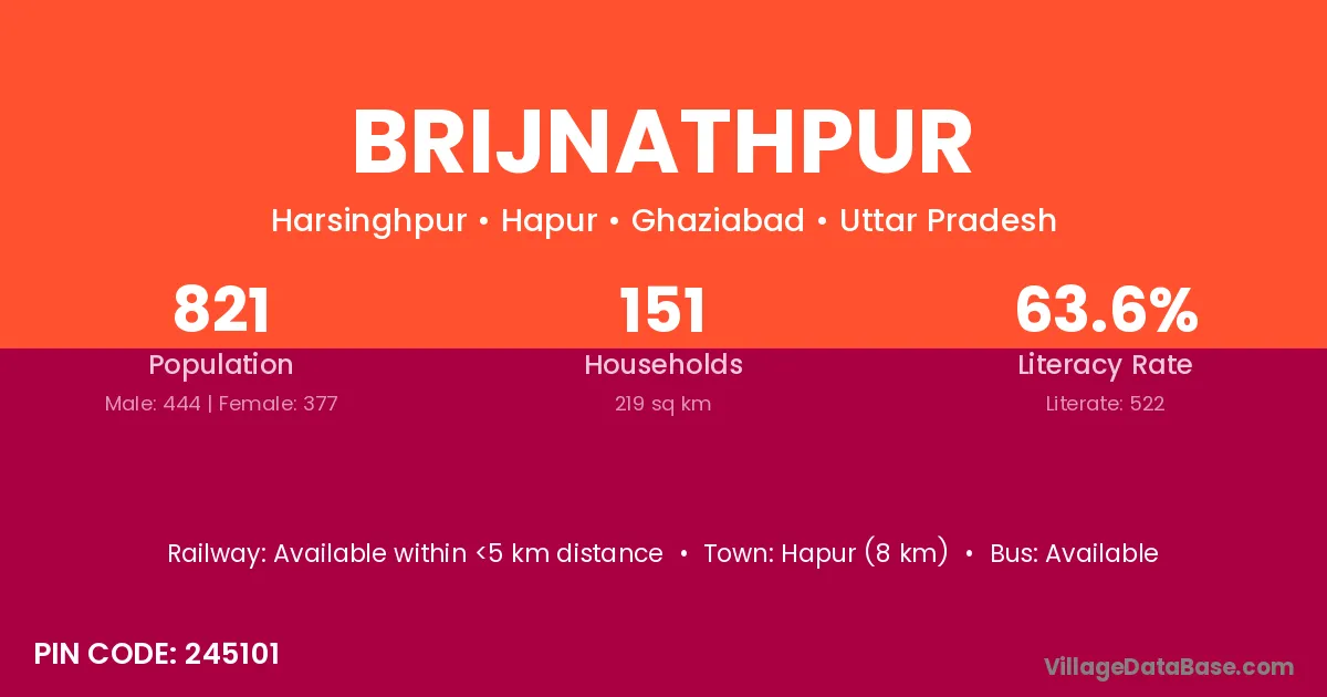 Hapur (8 km) is the nearest town to Brijnathpur village for major economic activities and is located approximately 8 km away.