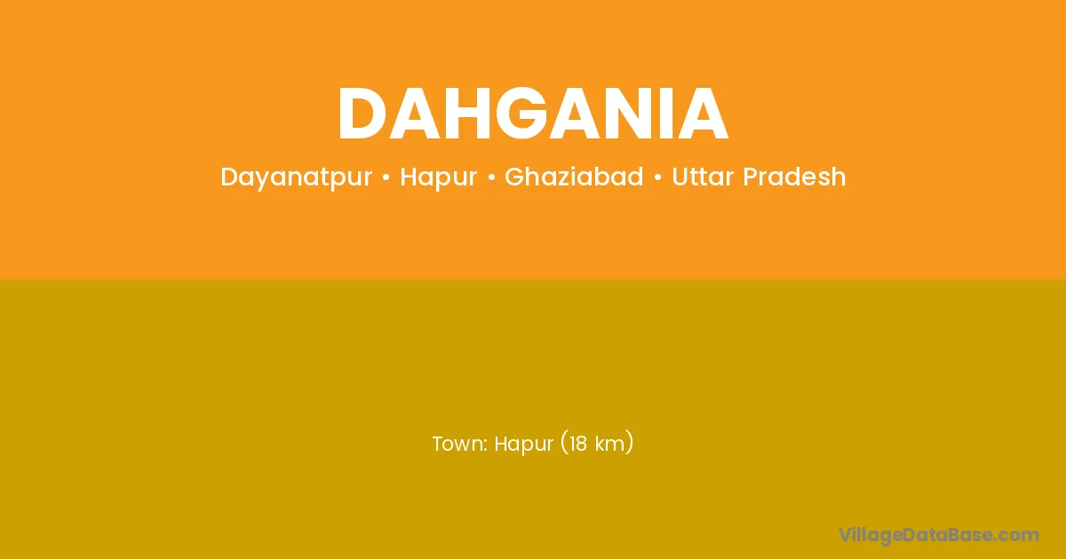 Hapur (18 km) is the nearest town to Dahgania village for major economic activities and is located approximately 18 km away.