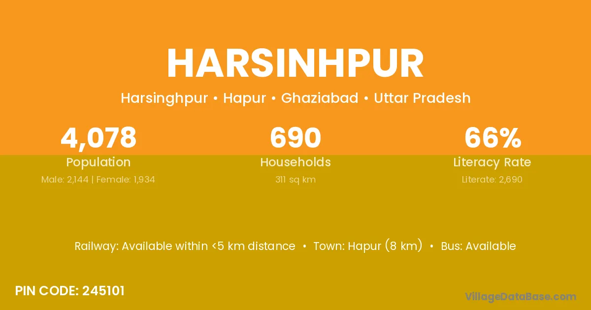 Hapur (8 km) is the nearest town to Harsinhpur village for major economic activities and is located approximately 8 km away.