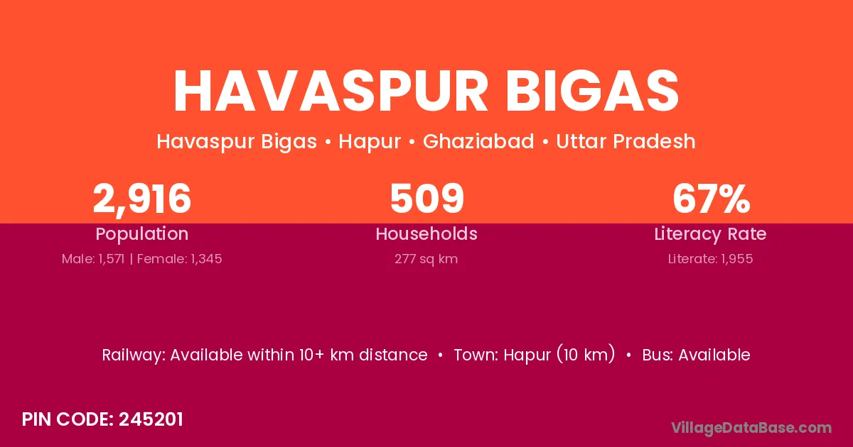 Hapur (10 km) is the nearest town to Havaspur Bigas village for major economic activities and is located approximately 10 km away.