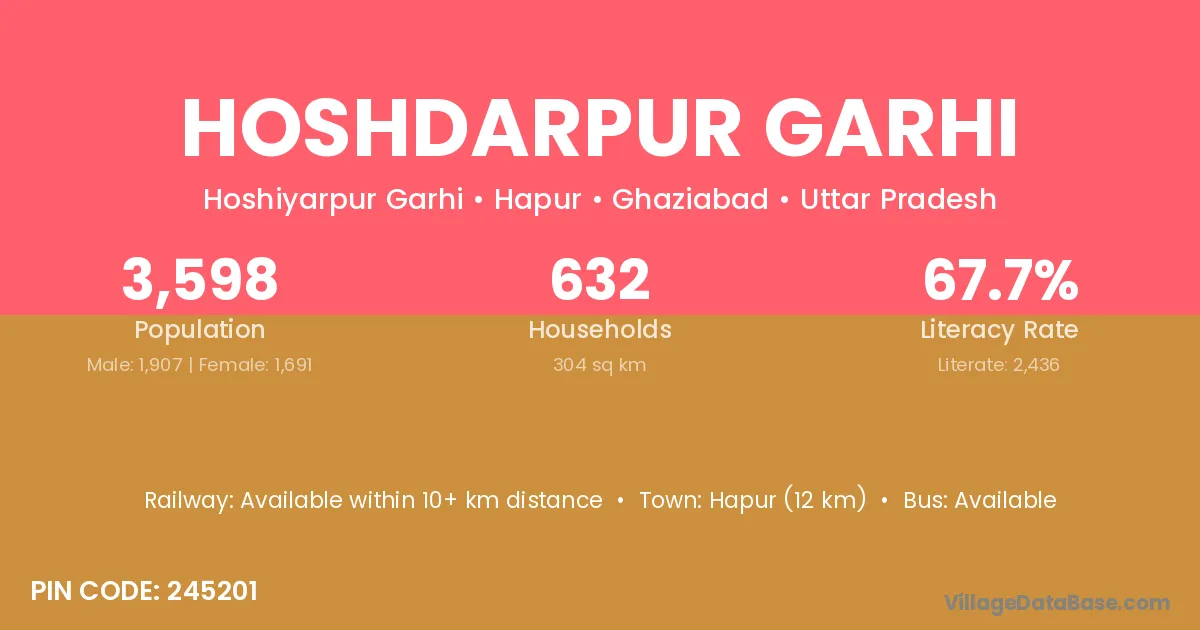 Hapur (12 km) is the nearest town to Hoshdarpur Garhi village for major economic activities and is located approximately 12 km away.