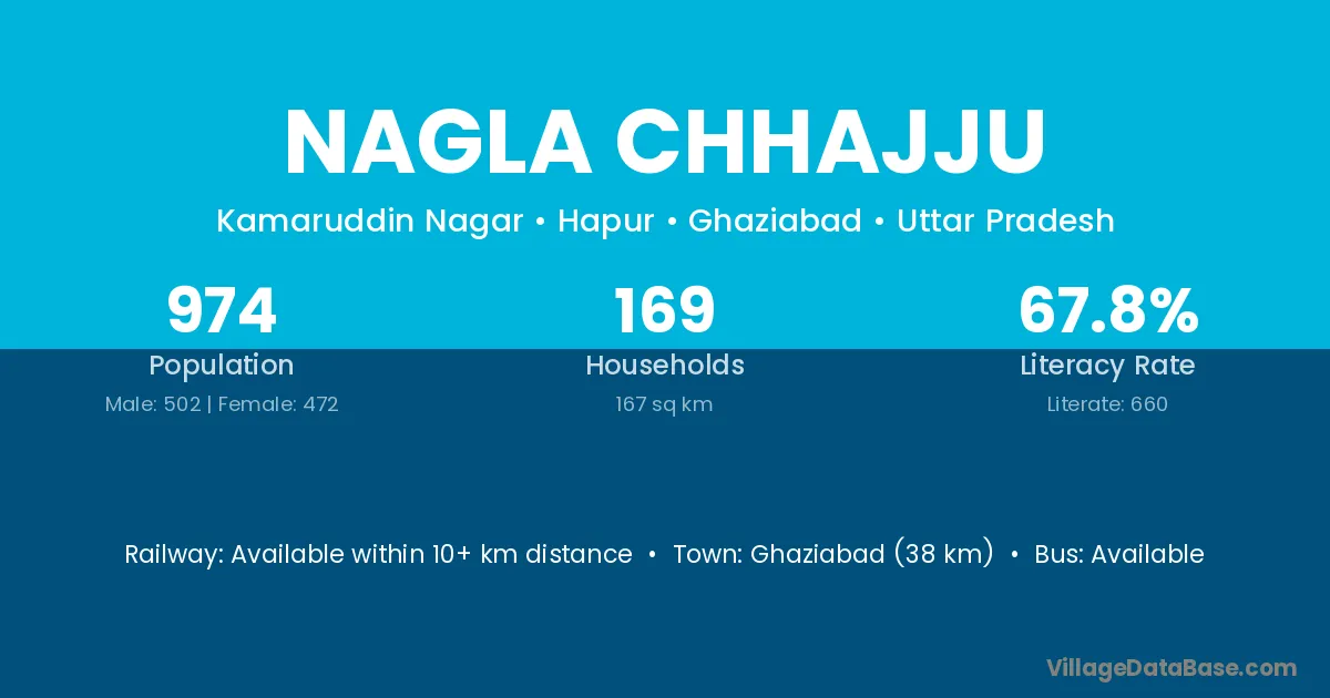 Ghaziabad (38 km) is the nearest town to Nagla Chhajju village for major economic activities and is located approximately 38 km away.