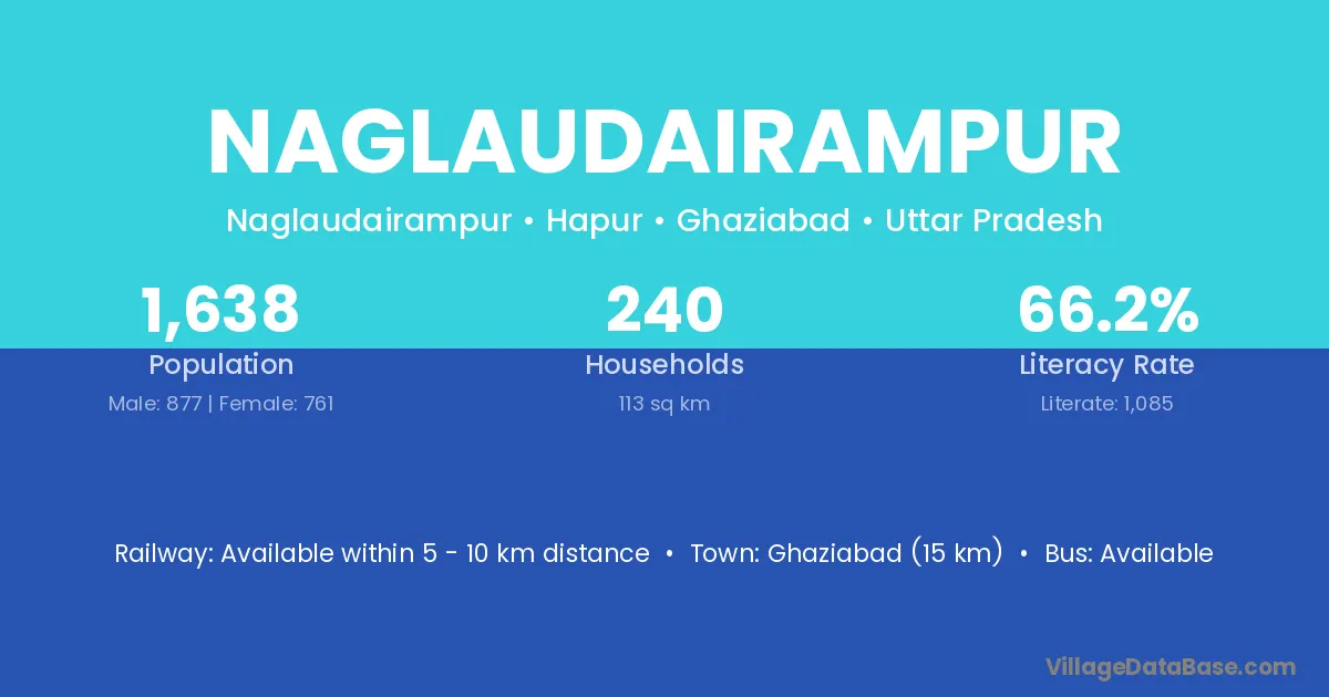 Ghaziabad (15 km) is the nearest town to Naglaudairampur village for major economic activities and is located approximately 15 km away.