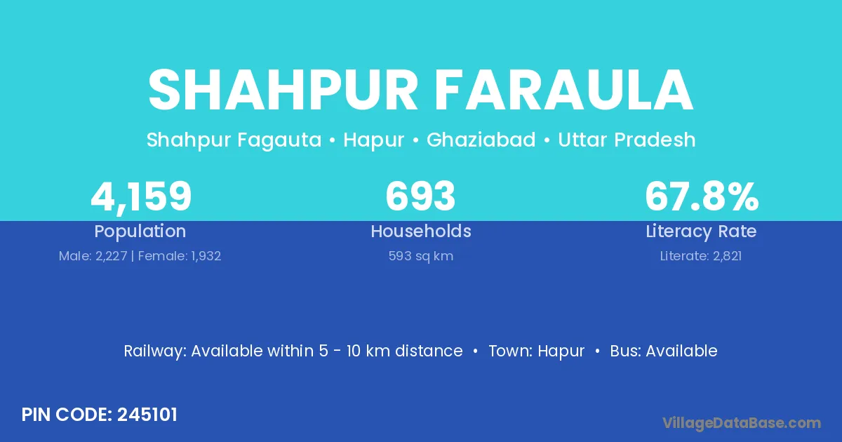 Hapur is the nearest town to Shahpur Faraula village for major economic activities