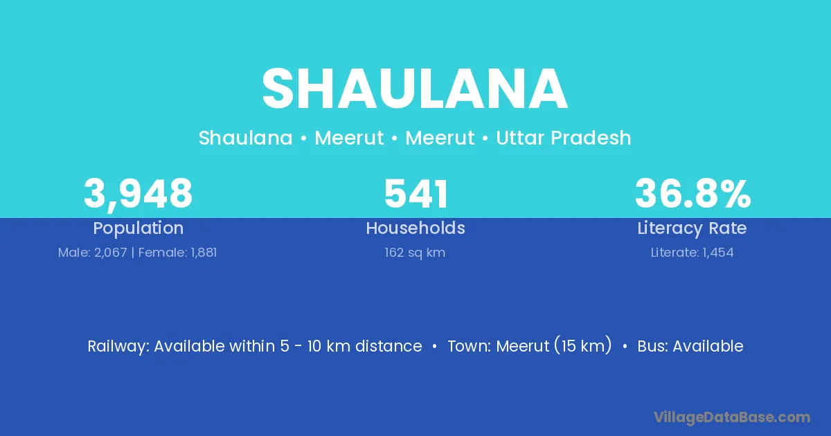 Ghaziabad (38 km) is the nearest town to Shaulana village for major economic activities and is located approximately 38 km away.