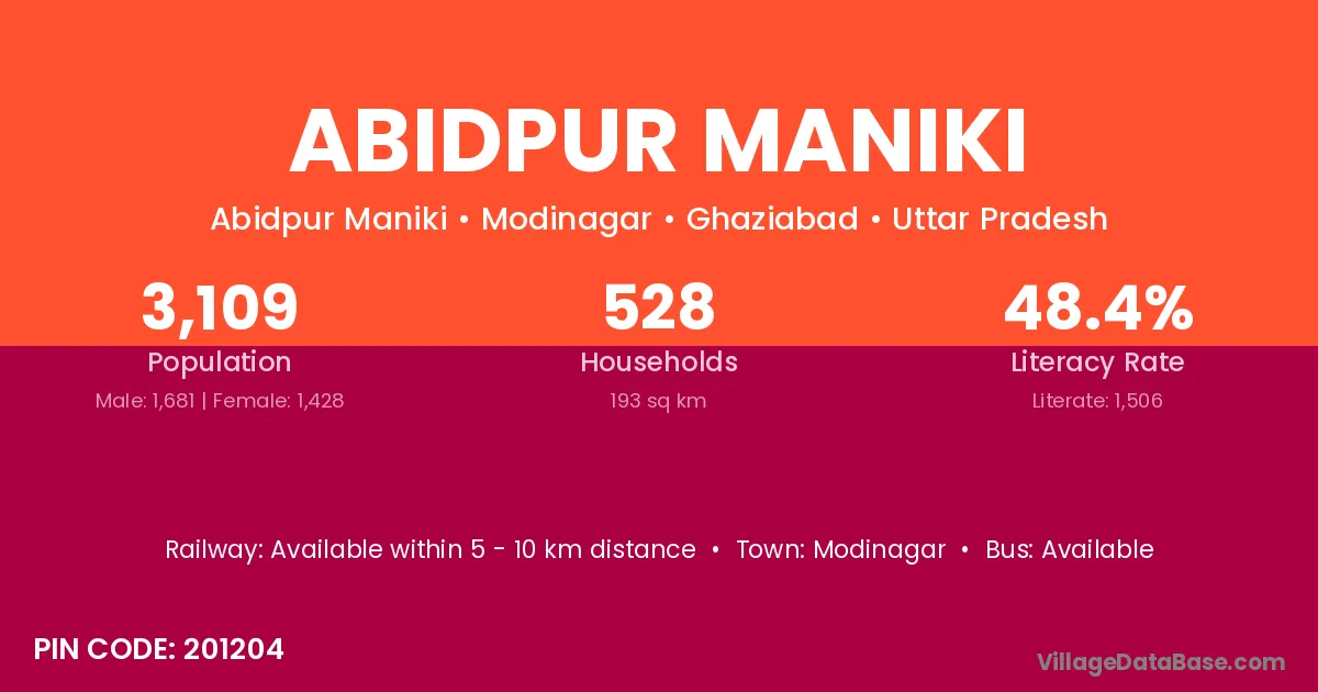 Modinagar is the nearest town to Abidpur Maniki village for major economic activities