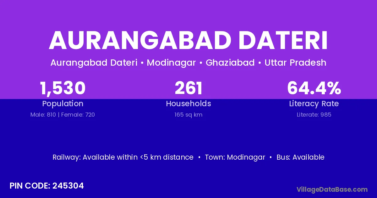 Modinagar is the nearest town to Aurangabad Dateri village for major economic activities