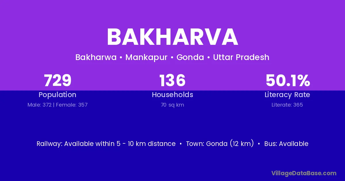 There are approximately 729 households in Bakharva village.