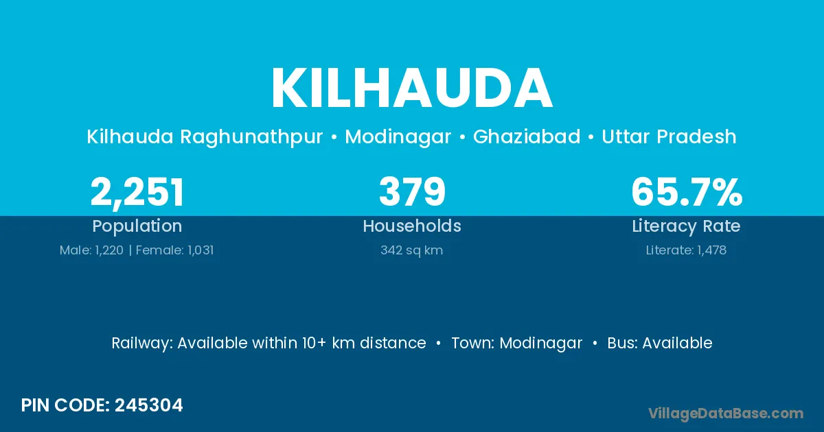 Modinagar is the nearest town to Kilhauda village for major economic activities