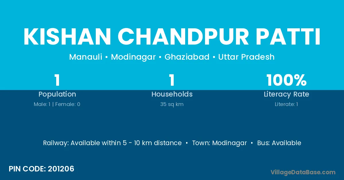 Kishan Chandpur Patti village has a total population of 1 people, of which 1 are males and 0 are females.