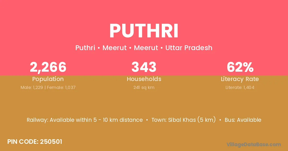 Puthri village has a total population of 1,138 people, of which 627 are males and 511 are females.