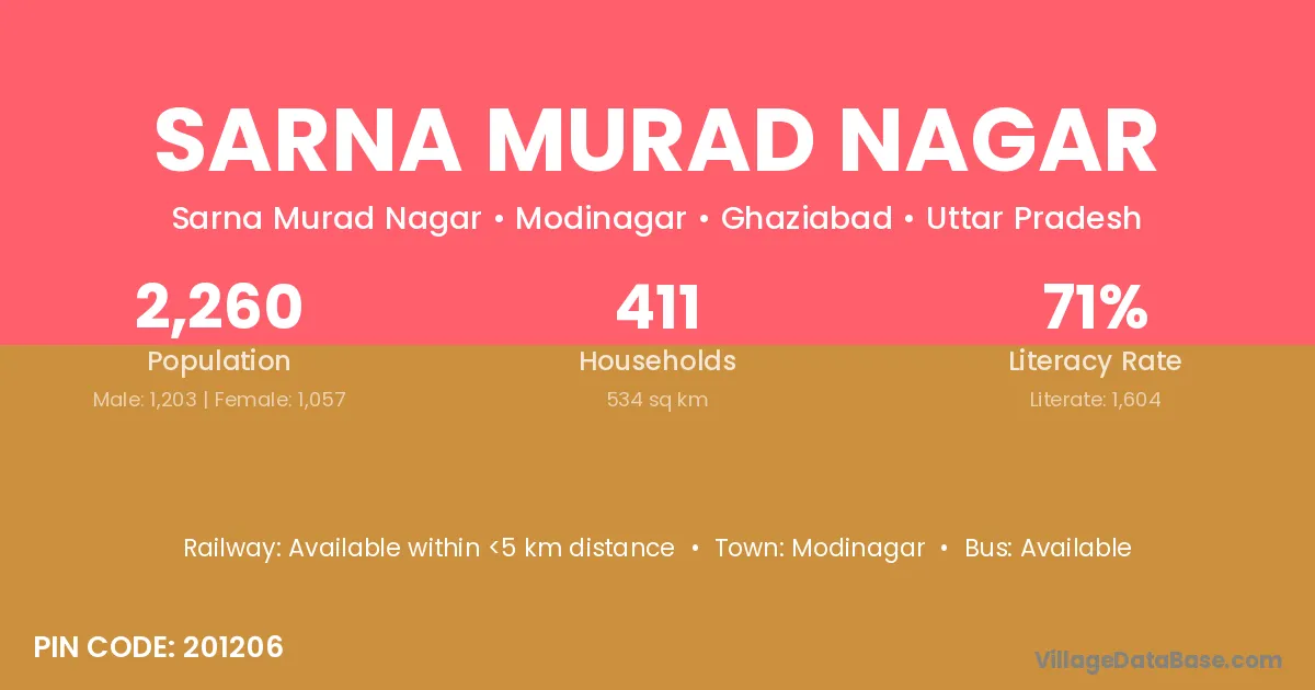 Sarna Murad Nagar village has a total population of 2,260 people, of which 1,203 are males and 1,057 are females.