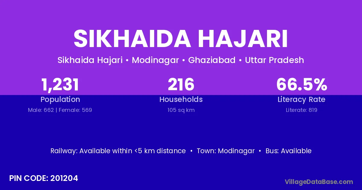 According to Census 2011 information, the village code of Sikhaida Hajari village is 201204.